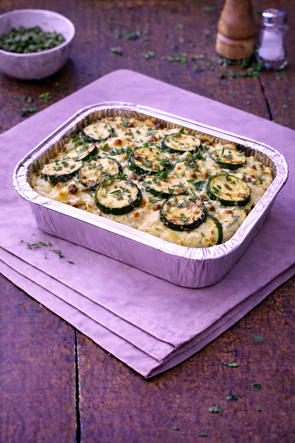 Gratin de courgettes à la ricotta et au romarin. Vendu à la part.