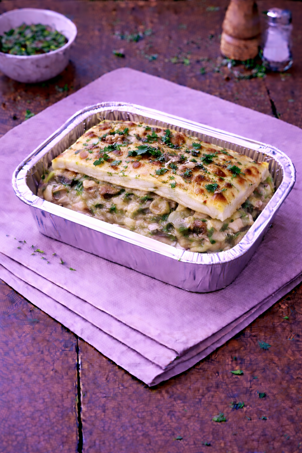 Lasagnes crémeuses aux champignons et béchamel maison. Vendues à la part.