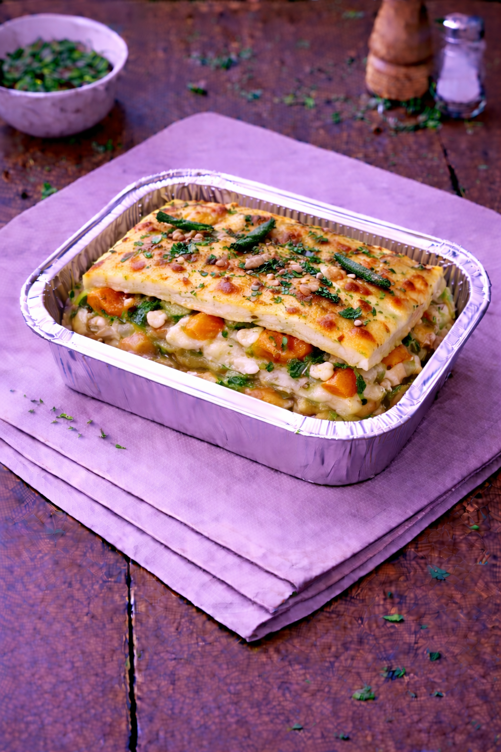 Lasagnes d’automne à la courge rôtie et ricotta. Vendues à la part.