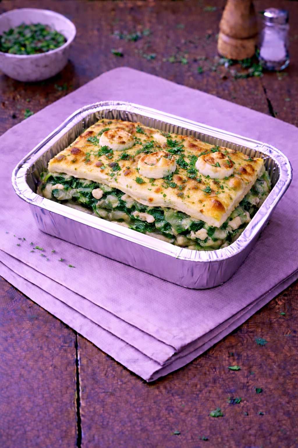 Lasagnes épinards chèvre cuisinées maison. Vendues à la part.