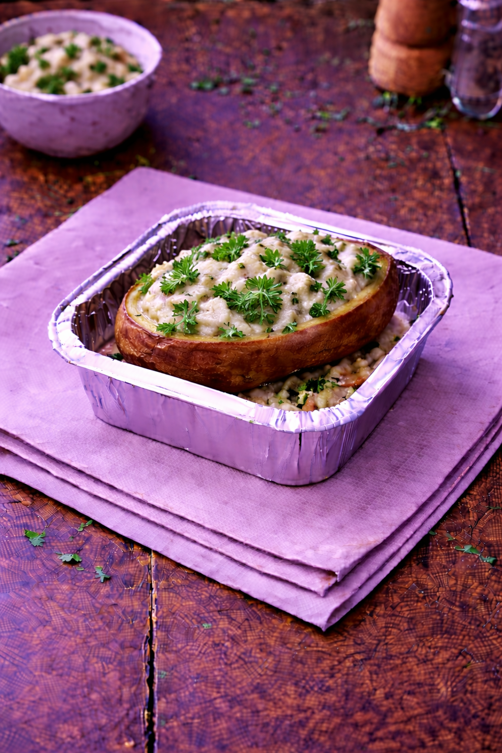 Pommes de terre farcies aux brocolis et Boursin. Vendues à la part.