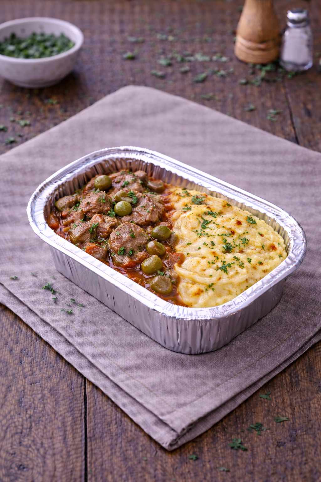 Sauté de veau aux olives et gratin dauphinois. Vendu à la part.